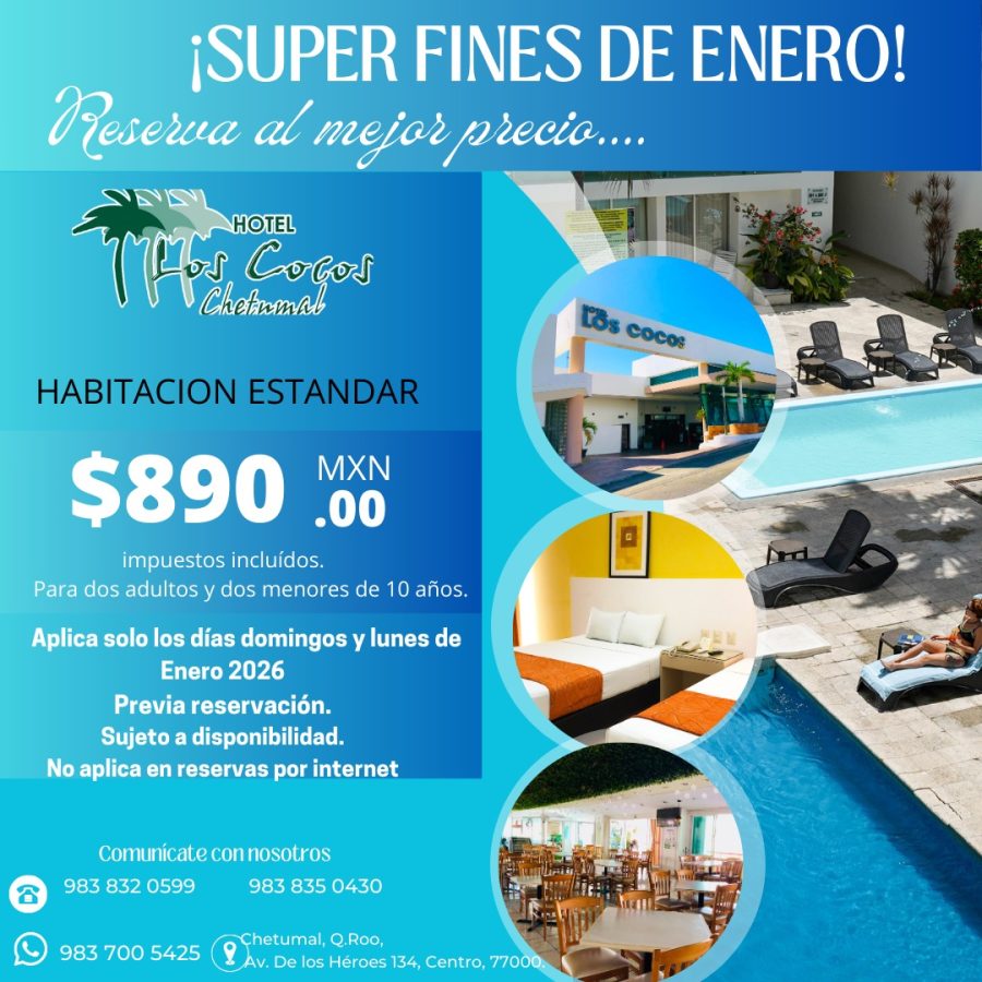 El Hotel Los Cocos, con su renovado estilo y clase, se levanta como símbolo de la hospitalidad Chetumaleña. Su arquitectura modernista, el verde esmeralda de sus exuberantes jardines y la atención cálida y esmerada de su gente, además de su privilegiada ubicación y el famoso sabor de la cocina mexicana de su restaurante, lo hacen el favorito de los visitantes.